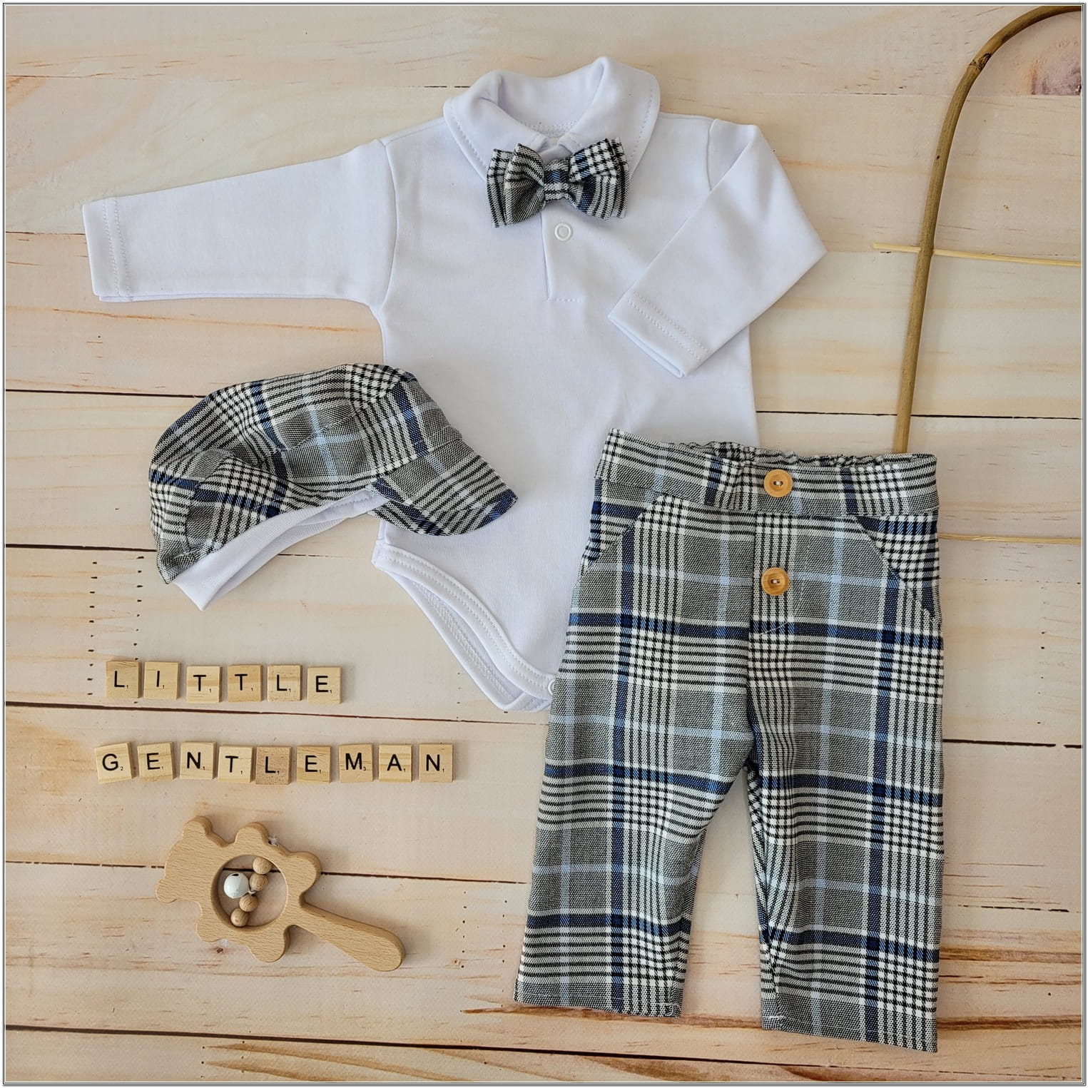 - Kojenecká elegantná 4 dielna súprava na krst pre chlapca káro