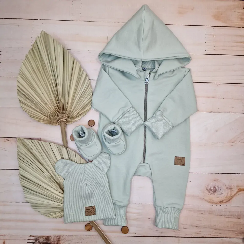 Overal, tepláková kombinéza bez nôh s odnímateľnou kapucňou + čiapka + topánočky. Univerzálny set: overal, čiapka + topánky na jar, leto a jeseň. Ideálne na chladné dni pod spací vak pre bábätko. Jednovrstvové oblečenie pre novorodencov a dojčatá. Zloženie : Overal 95% bavlna, 5% elastan Čiapka 95% bavlna 5% elastan Topánky 95% bavlna 5% elastan Na rukávoch a nohaviciach sú dlhé manžety, vďaka ktorým oblečenie rastie s dieťaťom. Teplákový overal poskytne vášmu dieťaťu pohodlie na jarných, jesenných a dokonca aj letných prechádzkach.