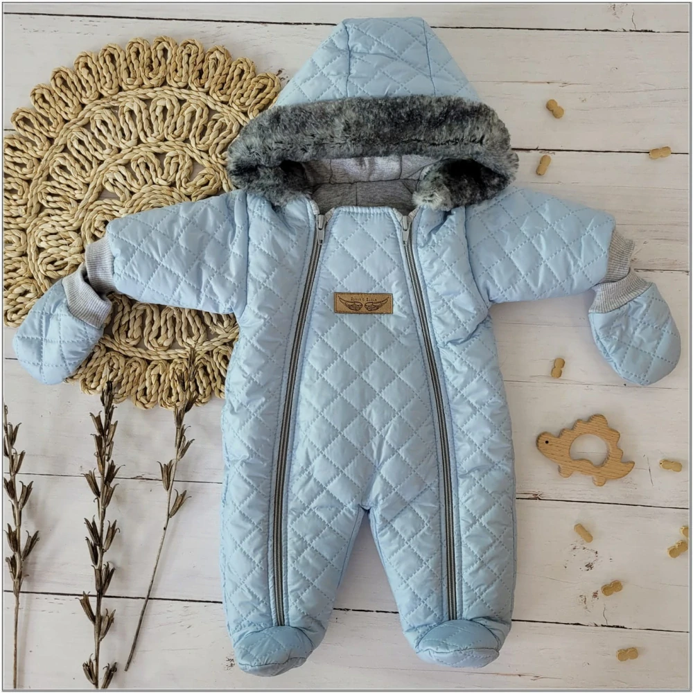 Kojenecká zimná prešívaná kombinéza bledomodrá