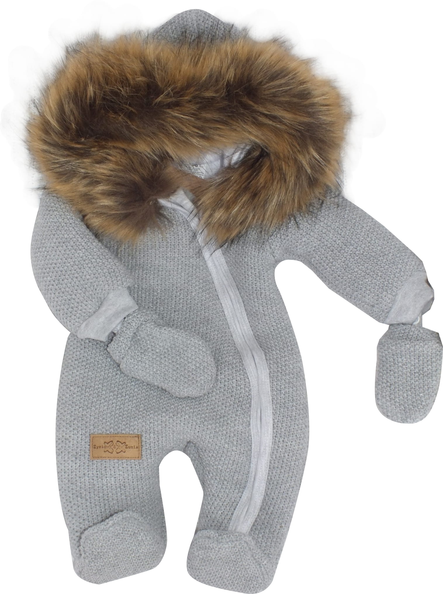 - Luxusná kojencká kombinéza pletená šedá s kožušinkou