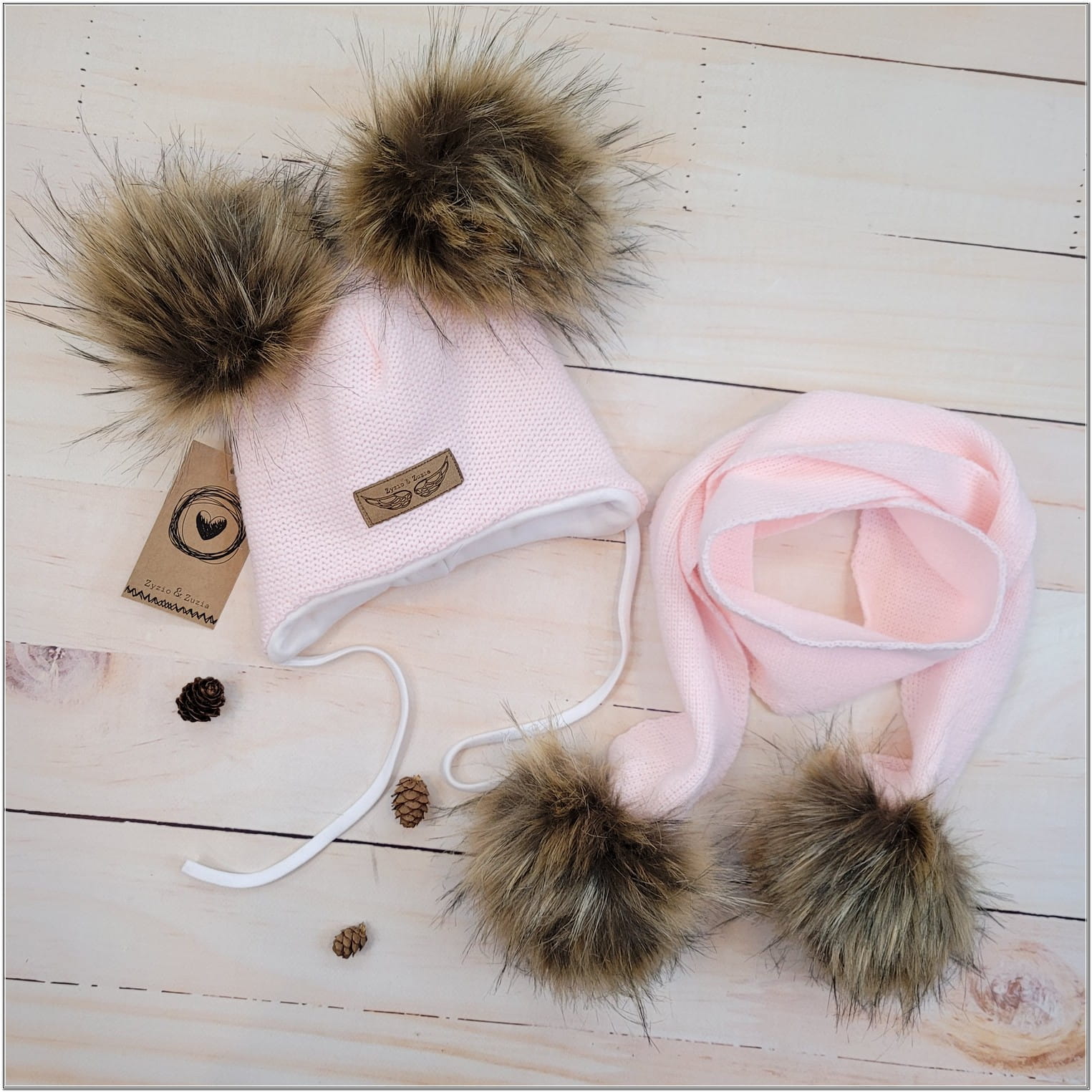 Zimná čiapka a šál s kožušinou pre bábätká ružová
